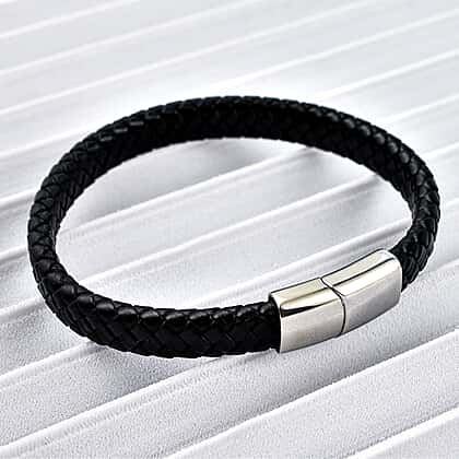 Genuine Leather Bracelet (Size - 7.5) in Stainless Steel