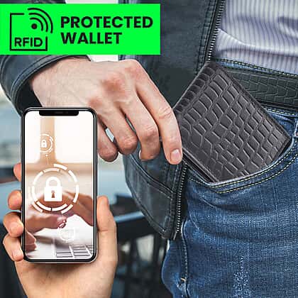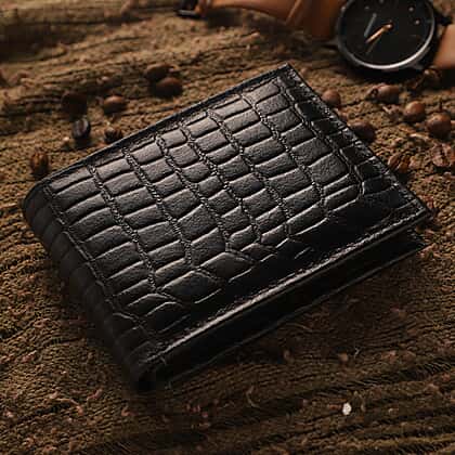 Genuine Leather Croc Embossed Mens Wallet - Black