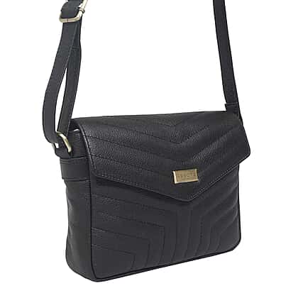 Genuine Leather Crossbody Bag (Size 23x18x5 cm) - Black