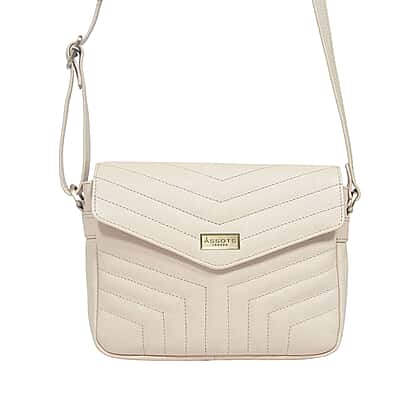 Assots London Genuine Leather Jessica Quilted Crossbody Bag - Nude
