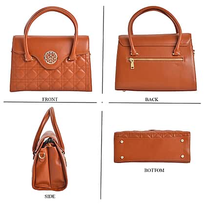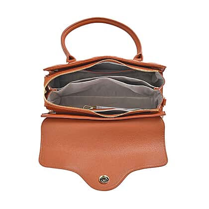 Genuine Leather Crossbody Bag with 2 Exterior Zipped Pockets & Shoulder Strap - Tan