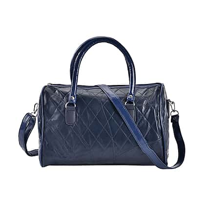 One Time Close Out Deal -Genuine Leather Duffle Bag with Handle Drop - Navy