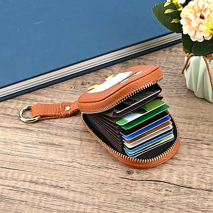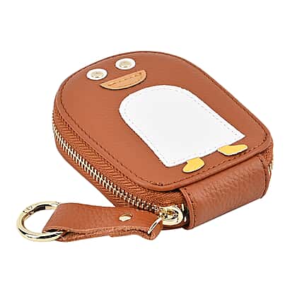 Genuine Leather Penguin Card Wallet with Keychain & RFID Technology - Tan