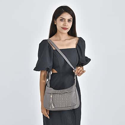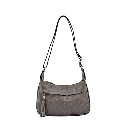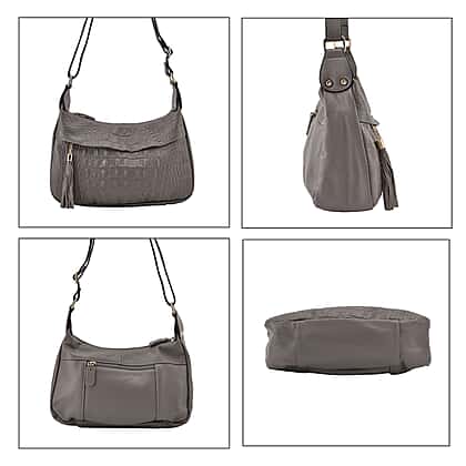 Genuine Leather Solid Crossbody Bag with Shoulder Strap (Size 28x20x10 cm) - Grey