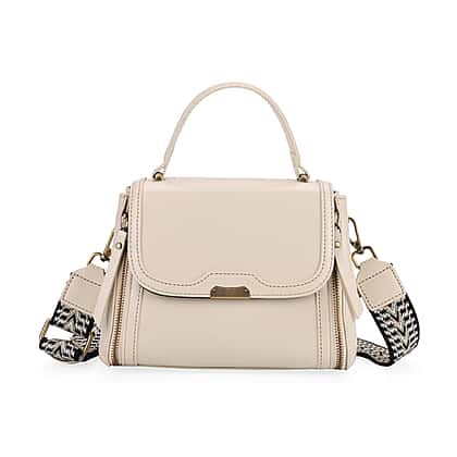 Genuine Leather Top Handle Satchel Bag with Adjustable Long Shoulder Straps - White