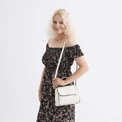 Refresh your accessories with this crisp white Genuine Leather Satchel Bag—a modern essential for chic styling. The clean silhouette (22×11.5×17cm) is balanced with practical features like two outer zipped pockets and an interior divided into one slip and two zipped compartments. With a structured 9cm top handle and a 130cm adjustable strap, it’s ideal for styling multiple ways. Whether paired with monochrome, prints or denim, this bag brings a polished finish to any outfit while keeping your belongings organised and secure.