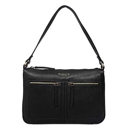 Assots London -Genuine Leather Mardi Black Pebble Grain Tote Bag