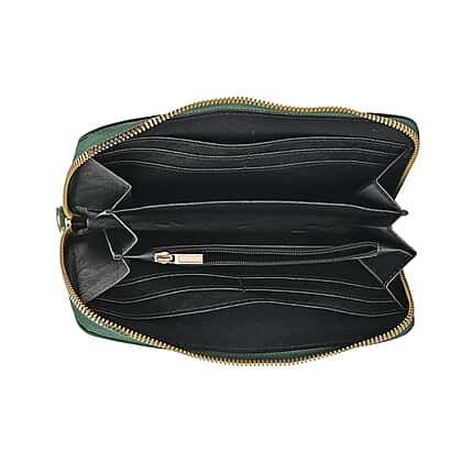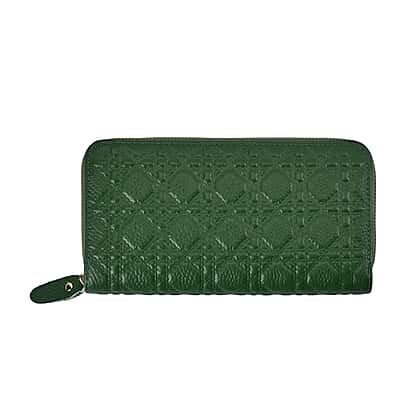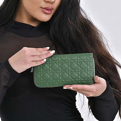 Genuine Leather Wallet with Embossed Quadrate Pattern & RFID Blocking - Green