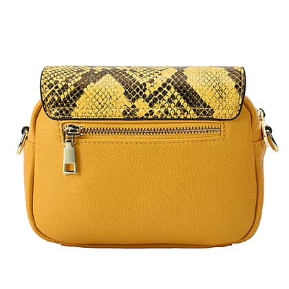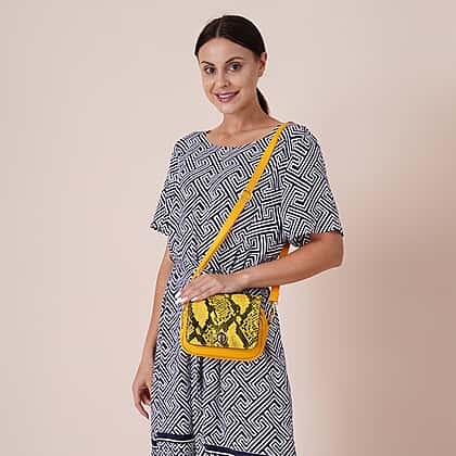- MATERIAL AND PRINT: A sumptuous-looking bag that is made durable and long-lasting by Genuine Leather and snake print in yellow colour
