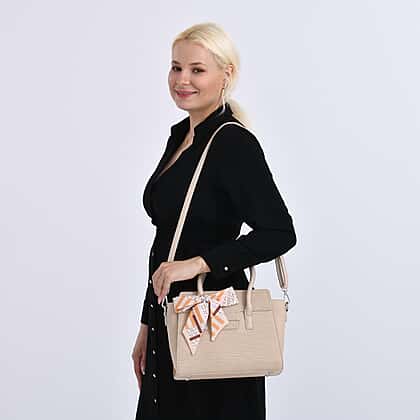 If you are looking for pieces that are perfect for work as well as weekend, then this set of Textured Crossbody Handbag and 2-in-1 Wristlet bag makes for a great pick. The beige-hued handbag features a chic textured pattern with a cutesy soft scarf tied on the handle. This handbag feels playful, feminine, and an outfit-elevating bag. Crafted with premium leatherette and soft polyester lining inside, this handbag is equal parts durable and stylish. It features two inside compartments and one zipper exterior to store all your essentials such as mobile charger, skincare products, phone, etc. The best part about it is that it can easily convert from a handbag to crossbody bag.The set also features a 2-in-1 Wristlet RFID Classic Kiss-Lock wallet in same hue. It features a zip-around closure, card slots, and RFID protection to keep cards safe. This leather piece features a metallic clasp and can work for weddings, date nights, and work events.