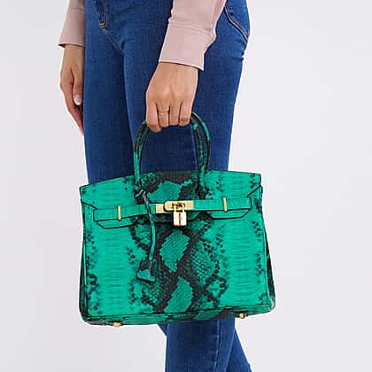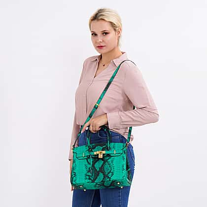 100% Genuine Leather Snakeskin Pattern Crossbody Bag - Green