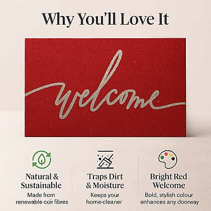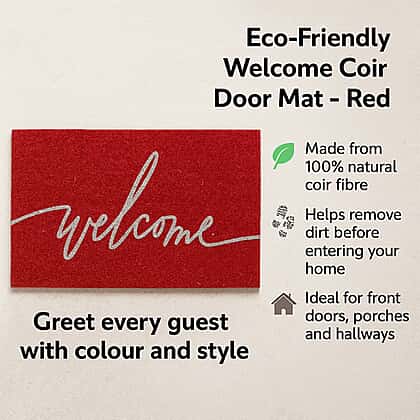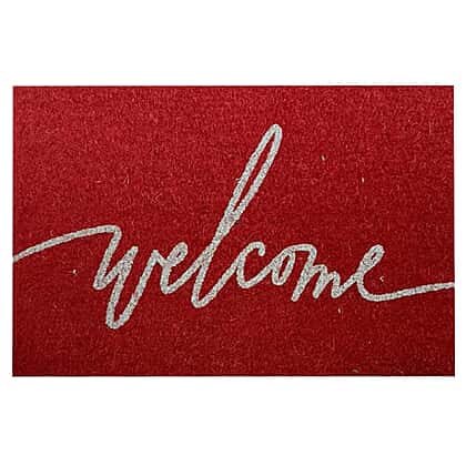 Eco-Friendly Welcome Print 100% Coir Door Mat - Red