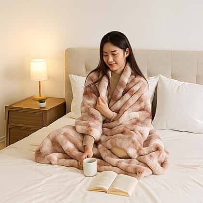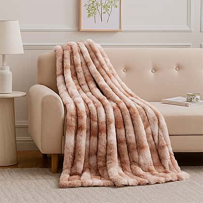 THE MOST SUMPTUOUS BLANKET AT TJC - LIVMORE Faux Rabbit Fur Blanket 650 GSM (Size 200x150 cm) - Brown & White