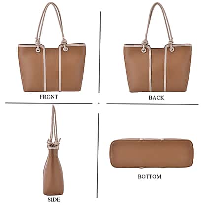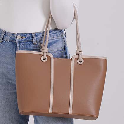Elegant Two-Tone Tote Handbag for Everyday Use - Brown & Beige