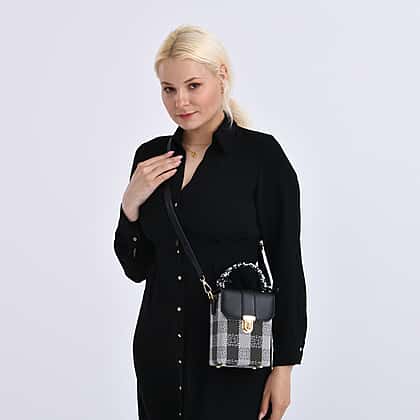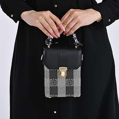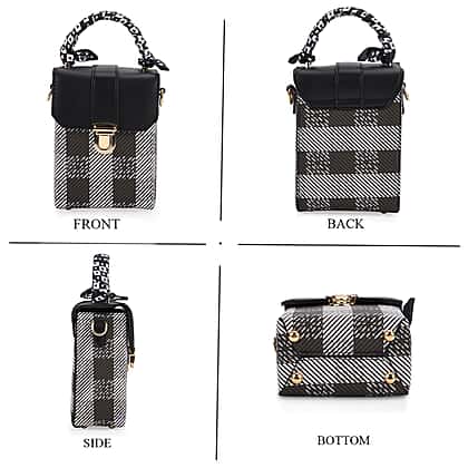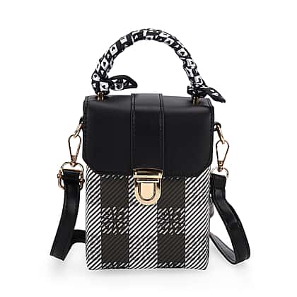 Trendy Plaid Pattern Messenger Bag with Scarf Accent & Adjustable Strap - Black