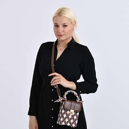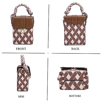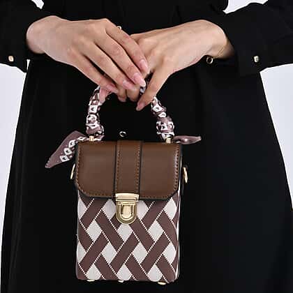 Trendy Rhombus Pattern Messenger Bag with Scarf Accent & Adjustable Strap - Brown