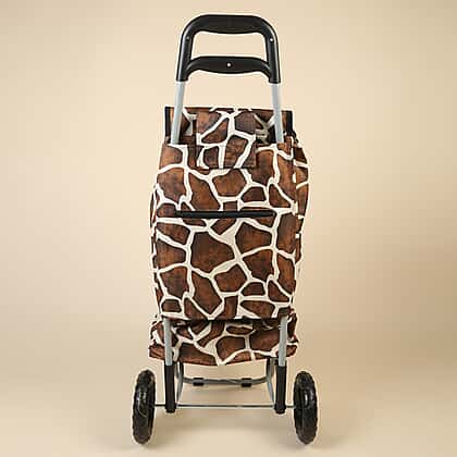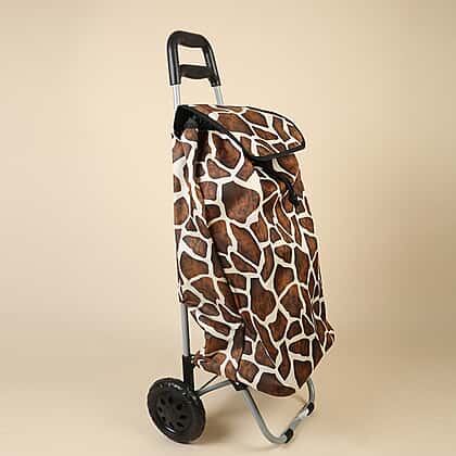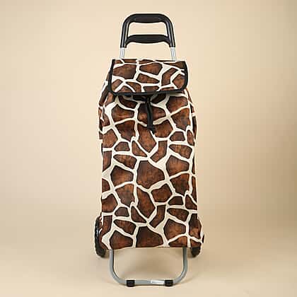 Giraffe Print Shopping Trolley Bag with Wheels in Brown & White (Size 35x25x62 Cm)
