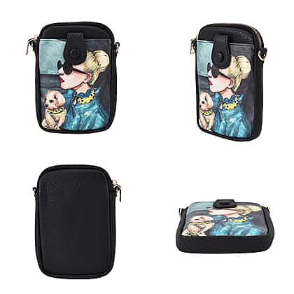 Girl Pattern Crossbody Cell Phone Bag (Size 19x13x2 cm) - Teal