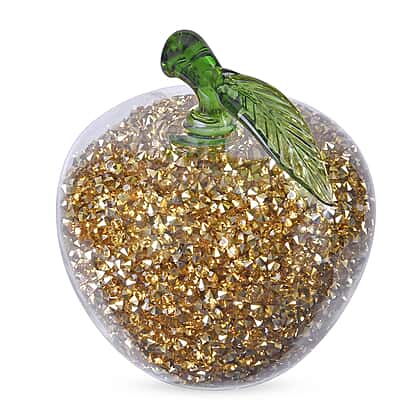 Glass Ornament Bling Diamond Crystal Filled Apple Shape - Gold