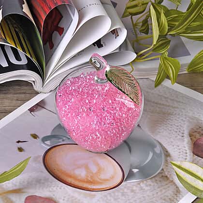 Glass Ornament Bling Diamond Crystal Filled Apple Shape - Pink