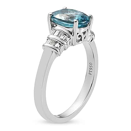 Glenstone Collection RHAPSODY 950 Platinum Natural AAAA Ratanakiri Blue Zircon and Diamond (VS-E-F) Ring 3.93 Ct, Platinum Wt. 5.80 Gms