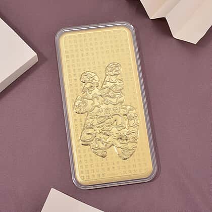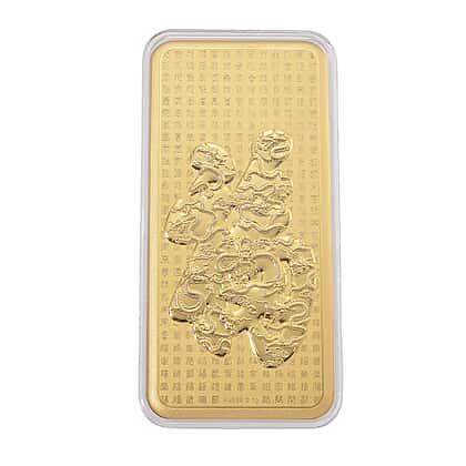 Celebrate tradition and prosperity with this 24K Gold Fu Symbol & Dragon Collectable, crafted from 99.9% pure gold and weighing 0.1g. Meticulously embossed, the intricate Fu symbol represents happiness and fortune, while the majestic dragons echo strength, power, and protection. The shimmering finish and elegant vertical layout make it a timeless token of positivity and cultural heritage. Ideal for gifting or treasuring, this hypoallergenic and tarnish-resistant gold piece resonates with significance far beyond its weight. Whether displayed as décor or preserved as a collectible, it combines ancient symbolism with premium purity for lasting inspiration and sentimental value in one radiant design.