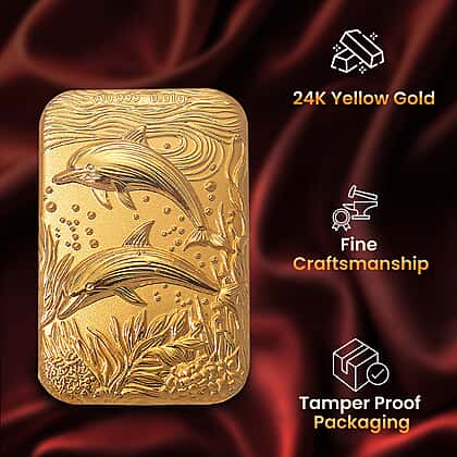 24K Yellow Gold (99.9% Purity) Dolphin Embossed Collectible (39.85 x 25.95 mm)