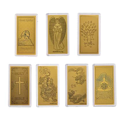 Set of 7 - 24K Yellow Gold Dragon, Pixiu, Elephant, Tree of Life, Chakras, Bible and Angel Embossed Pattern Collectables