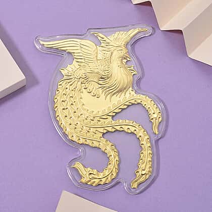 Crafted from 24K yellow gold, this Phoenix Pattern Collectable celebrates rebirth, strength and grace. Its intricate detailing showcases elegant feathers and a flowing tail, capturing the mythical bird mid-flight. Hypoallergenic and tarnish-resistant, it offers beauty and purity. The radiant finish and fine artistry reflect heritage and meaning. It’s perfect as a keepsake or heirloom, presented in a protective shell. The 999.9 purity gold ensures premium value, while the embossed design tells a powerful story of transformation. A rare treasure that blends cultural symbolism with exceptional craftsmanship, this collectable is timeless, symbolic and highly collectable for any meaningful gold gift.