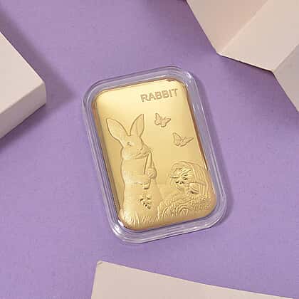 Gentle charm meets artistry in the 24K yellow gold embossed rabbit collectable, a radiant symbol of peace, prosperity, and new beginnings. Crafted with precision, the design features a delicately detailed rabbit surrounded by butterflies and flowers — a scene that celebrates hope and renewal. Made from pure 24K gold, it boasts a rich, lasting sheen that’s resistant to tarnish, ensuring beauty that endures. Housed in a protective case, this lightweight collectable adds warmth and meaning to any collection, perfect for those drawn to serenity, luck, and the artistry of fine craftsmanship.