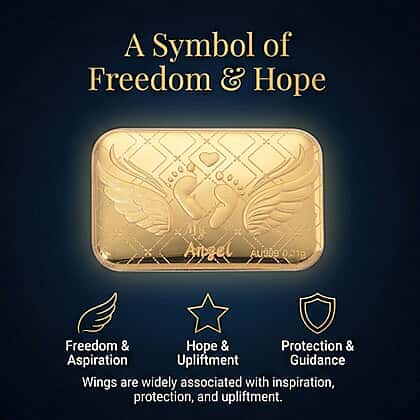 Delicate and filled with meaning, the 24K yellow gold angel embossed collectable is a timeless keepsake that celebrates love, protection, and faith. The detailed engraving of angel wings, tiny footprints, and a heart symbol creates a design that feels both personal and precious. At 0.01g, it’s a compact yet significant treasure, perfect as a thoughtful gift or a cherished token to hold close. Crafted in 99.99% pure gold, it’s hypoallergenic, tarnish-resistant, and built to last, ensuring its radiance never fades. Highly valued for its symbolic artistry and purity, this collectable offers beauty, comfort, and lasting emotional connection.