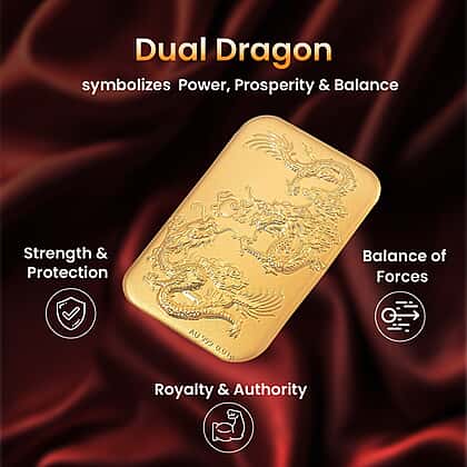 24K Yellow Gold (99.99% Purity) Dragon and Phoenix Embossed Collectable