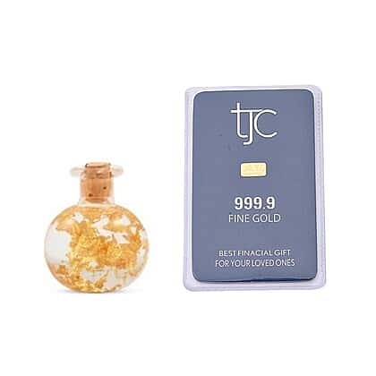 Gold Offer - The Ultimate Luxury Treasure - 24K 99.99% Purity Pure Yellow Gold Bar with FREE 22K Gold(91.6%Purity) Foil in Glass Bottle