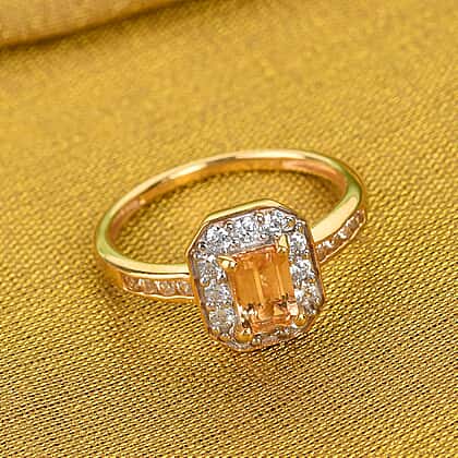 1.22 Ct. Golden Imperial Topaz and Natural Cambodian Zircon Ring in 14K Gold Plated Sterling Silver