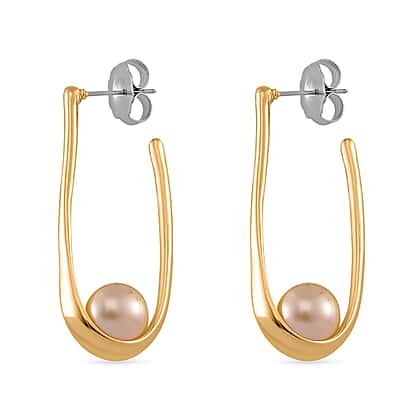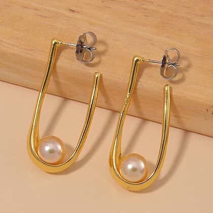Golden Shell Pearl U-Shape Earrings in Gold Tone