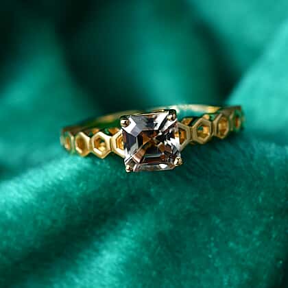 GP - AAA Royal Asscher Cut Turkizite (1.2ct) & Kanchanaburi Blue Sapphire Ring in 18K Vermeil Yellow Gold Plated Sterling Silver 1.24 Ct.