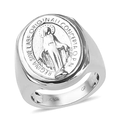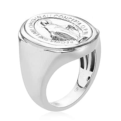 - Intricate detailing on the ring with a the smooth finish and letters framing Virgin Mary crushing the serpent offers an extraordinary look to the ring