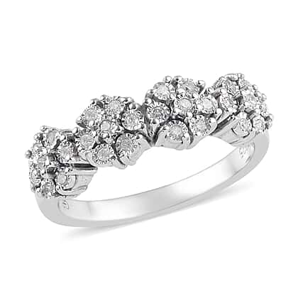 GP 0.17 Ct Diamond and Blue Sapphire Floral Ring in Platinum Plated Sterling Silver