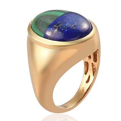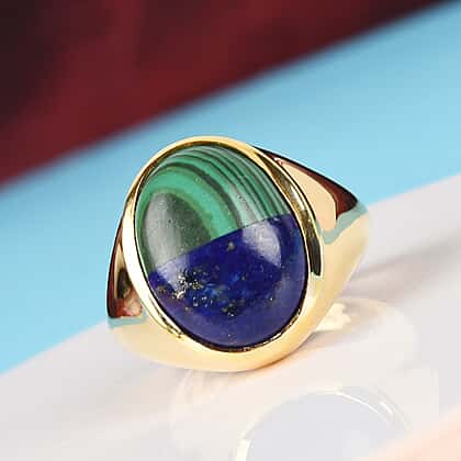 • The unusual gemstone is created using half lapis & half malachite and gives the ring a trendy look
