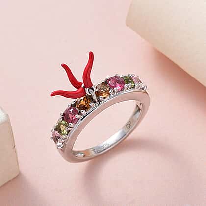 GP - Multi-Tourmaline Enamelled Ring in Platinum Overlay Sterling Silver 1.20 Ct.