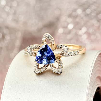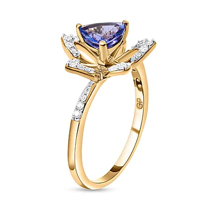 - STONE DETAILS: A trillion faceted cut Tanzanite and round faceted cut Diamonds offers world-class gleam to this ring as they have been embellished through prong setting