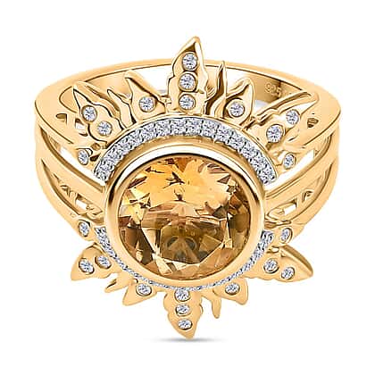GP- Celestial Dream Collection Citrine, Blue Sapphire & White Zircon Ring in 18K Vermeil Yellow Gold Plated Sterling Silver 3.88 Ct, Silver Wt. 5.18 Gms.