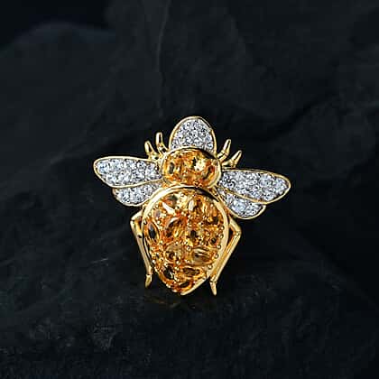 GP- Italian Garden Collection - Citrine & Natural Zircon Bee Ring in 18K Yellow Gold Vermeil Plated Sterling Silver 3.12 Ct, Silver Wt. 7.6 Gms.