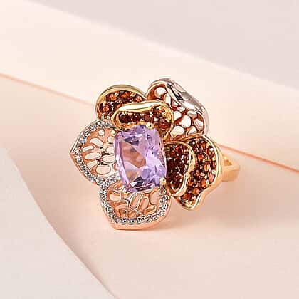GP- Italian Garden Collection - Ultimate Rose De France Amethyst and Multi Gemstone Cluster Ring in 18K Yellow Gold Vermeil & Platinum Plated Sterling Silver 3.52 Ct