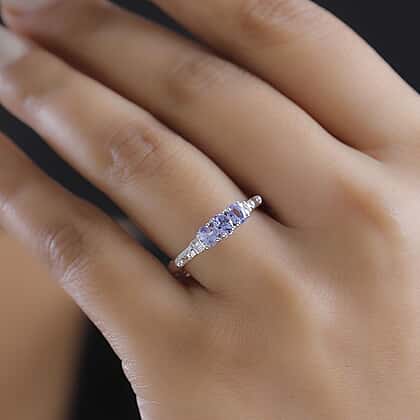 - Features three tanzanite gemstones, creating a trilogy design ring.