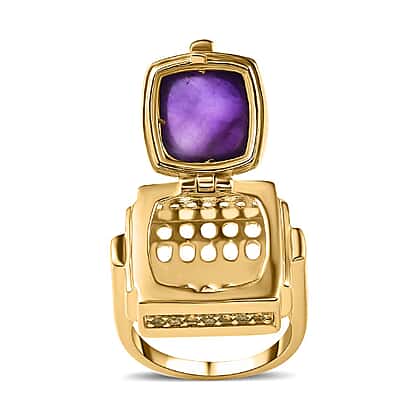 GP Art Deco Collection - Amethyst & Hebei Peridot Enclosed Pendant inside Openable Ring in 18K Vermeil Yellow Gold Plated Sterling Silver 9.26 Ct, Silver Wt. 15.50 Gms