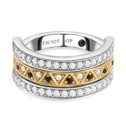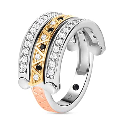 GP Art Deco Collection - Boi Ploi Black Spinel and Natural Zircon Interchangeable Ring in Platinum, Vermeil Yellow and Rose Gold Plated Sterling Silver