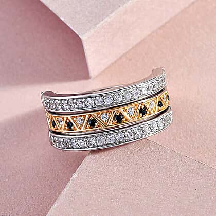 GP Art Deco Collection - Interchangeable Ring with Boi Ploi Black Spinel, Natural Cambodian Zircon and Blue Sapphire Ring in Platinum, Vermeil Yellow and Rose Gold Plated Sterling Silver
