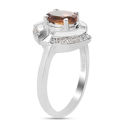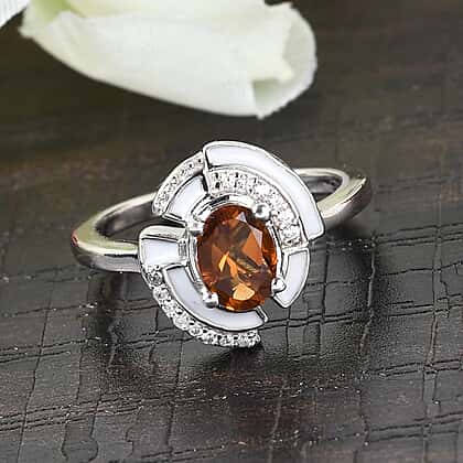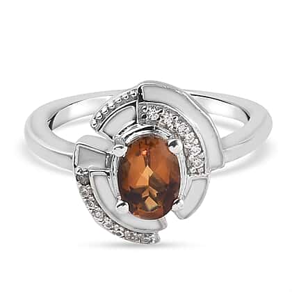 GP Art Deco Collection - Serra Gaucha Citrine, Natural Cambodian Zircon and Multi Gemstone Enamelled Ring in Platinum Overlay Sterling Silver