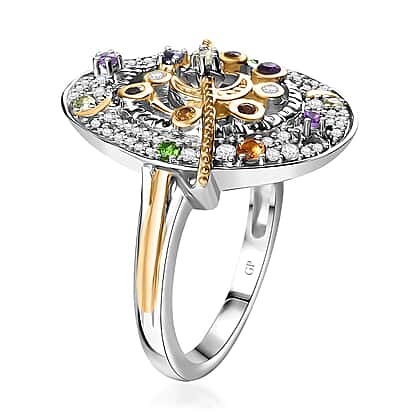 GP Celestial Collection - Peridot & Multi Gemstone Ring in 18K Vermeil Yellow Gold Plated & Rhodium Overlay Sterling Silver